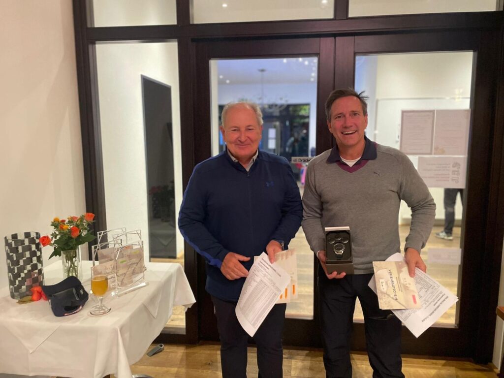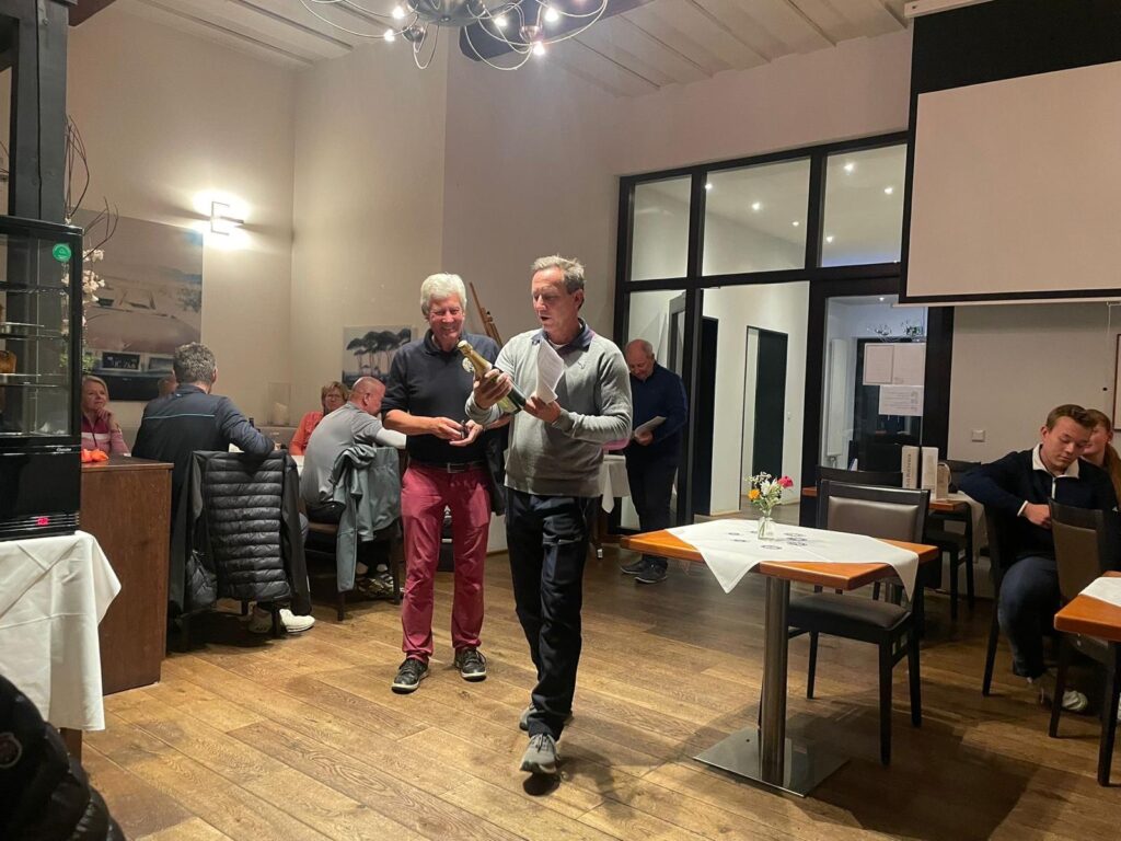 Aber mit den Preisen war es damit noch immer nicht genug. Juwelier Weber spendierte für das Saisonfinale noch Birdiebälle und für die niedrigsten Nettoergebnisse Trost-Champagner, so dass die Siegerehrung in geselliger Runde im Clubhaus für viele zufriedene und reich beschenkte Gesichter sorgte. Schatzmeister Andreas Puls konnte an diesem Abend auch noch eine wunderbare weitere Nachricht überbringen: Juwelier Weber wird auch in der Saison 2026 wieder die After-Work-Turnierserie im Vestischen Golfclub unterstützen. Der Vorstand bedankt sich im Namen aller Mitglieder des Clubs herzlich für dieses herausragende Engagement und freut sich auf viele tolle Turniere auch im Jahr 2026.