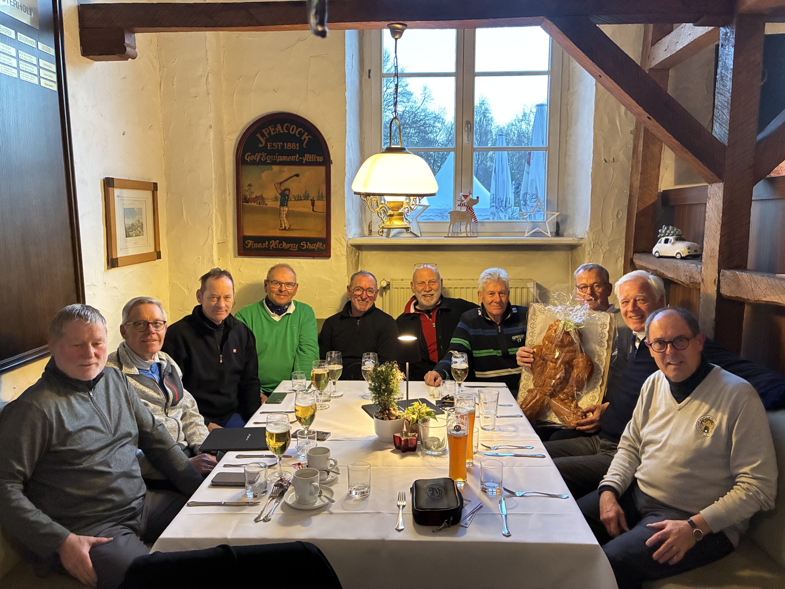 Die Saison 2025 ist gerade erst vorbei, da wirft die Saison 2026 für die AK65 II des Vestischen Golfclubs Recklinghausen bereits ihre Schatten voraus. Am 23. April 2026 wird die Mannschaft um Kapitän Eberhard Ganz ihr erstes Spiel der neuen Saison auf der Anlage des Golfclubs Schloss Westerholt austragen. Deshalb trafen sich die Spieler schon jetzt zu einer Golfrunde auf der Westerholter Anlage unter Turnierbedingungen. 10 Recklinghäuser spielten bei zwar kalten, aber besten Platz-Bedingungen. Am Ende gab es für alle nicht nur wärmende Getränke, sondern auch einen Stutenkerl und die sichere Erkenntnis, dass aus dem herbstlichen Stutenkerl-Turnier eine Tradition werden soll.