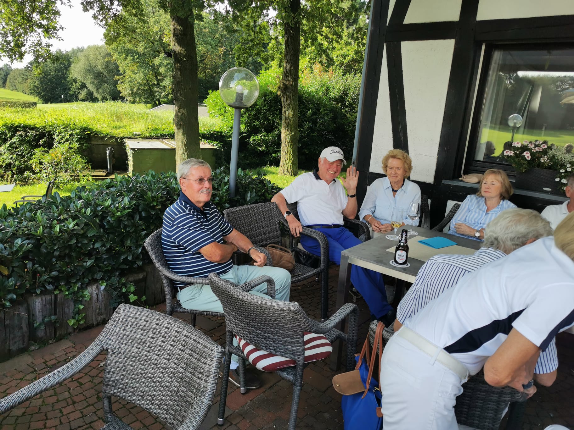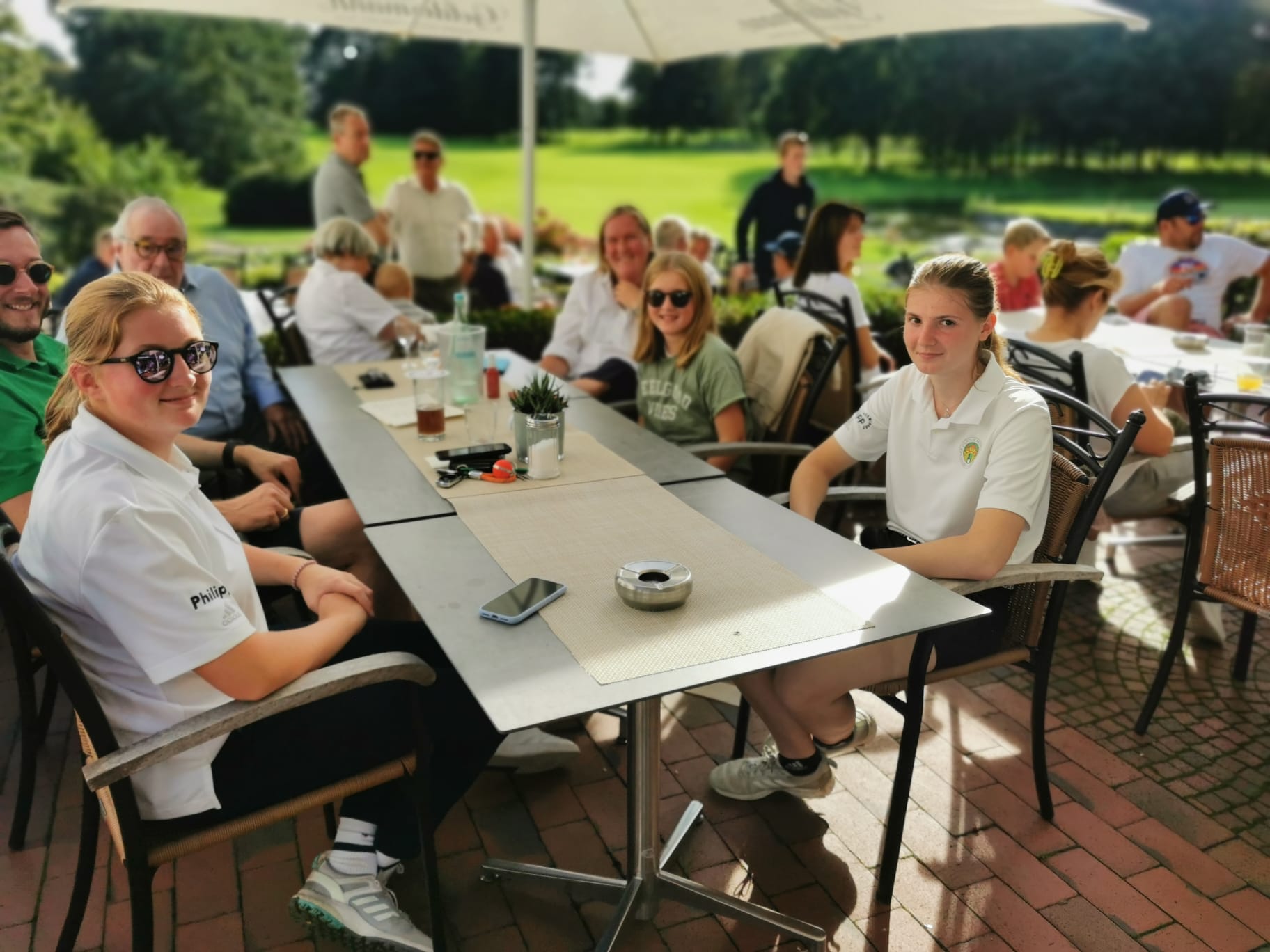 Und weil nicht wenige von ihnen für die offene Klasse gemeldet hatten, durften sie sich nur eine kleine Pause nach 18 Loch genehmigen, denn traditionell werden im Vestischen Golfclub bei der Clubmeisterschaft am Samstag 36 Loch, also 2 Runden, gespielt. Die Pause nutzen alle aber zu einer ordentlichen Stärkung, die das Team von Charlotte Czirjak in Form von Currywurst und Pommes auf die Teller zauberte.
