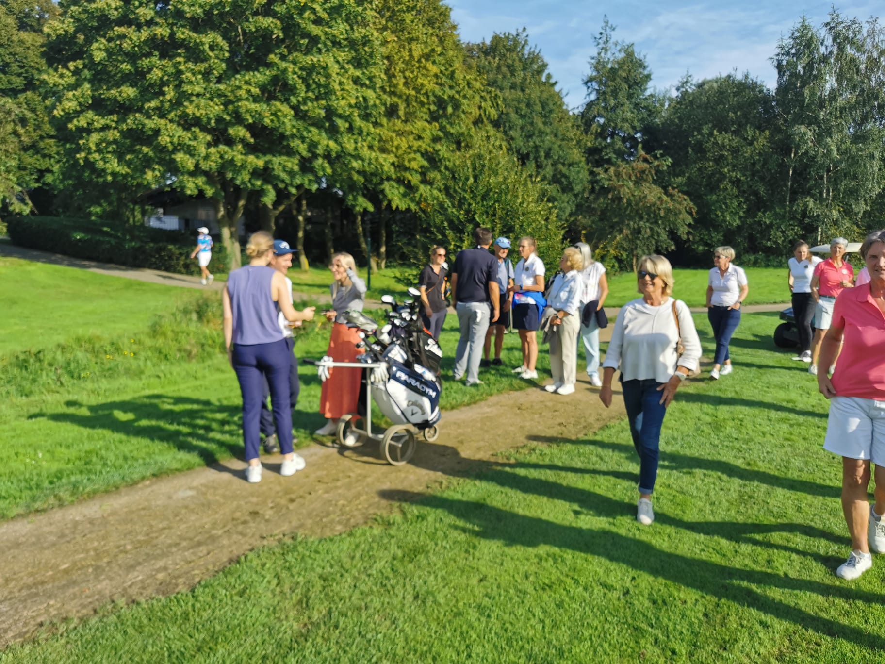 Schon früh am Morgen herrschte reges Treiben auf der Anlage, denn schon ab 8 Uhr in der Früh und von da an alle 8 Minuten gingen die Flights der offenen Klasse auf die Runde. Gestartet wurde streng nach Handicap, so dass Maximilian Sattler, Oliver Schwarzhoff und Luca Möllhoff die Ehre der ersten Abschläge gebührte. Ab dem frühen Mittag gingen dann die Golferinnen und Golfer auf die Reise, die nicht in der offenen Turnierklasse gemeldet hatten, sondern nur in den Altersklassen-Wertungen um die Platzierungen spielen wollten. Aufgrund der Wetterbedingungen mussten die eigentlich bereits für Anfang August geplanten Senioren-Clubmeisterschaften abgesagt und mit der offenen Clubmeisterschaft zusammengelegt werden. Das bedeutete jede Menge Arbeit für die Turnierleitung und das Team in Sportbüro und Sekretariat, denn mehr als 80 Spielerinnen und Spieler waren am Samstag am Start.