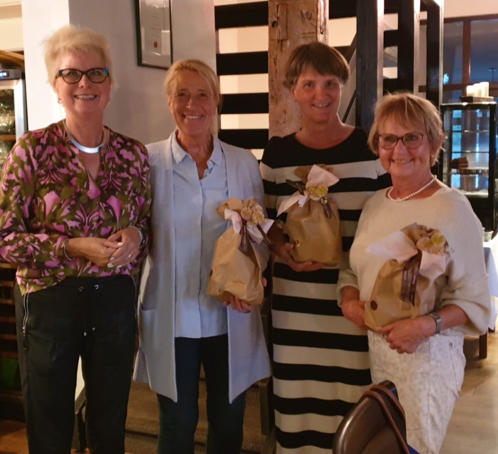 Die Siegerinnen des Turniers waren Barbara Eckhorst, Michaela Grüneberg und Anneliese Alex mit 46 Netto-Punkten. Den zweiten Platz belegten Inge Just, Ulrike Gockeln und Barbara Pantförder-Schmekel mit 43 Nettopunkten. Den dritten Platz erspielten sich Yvonne Siekmann, Renate Billenkamp und Marianne Peuckmann ebenfalls mit 43 Nettopunkten. Wir gatulieren den Siegerinnen recht herzlich. Die Preise, exklusive Plätzchen der Konditorei Küper in Recklinghausen, kamen bei den Damen sehr gut an. Auch wenn das nach dem Verzehr vielleicht die ein oder andere Extra-Golfrunde bedeutet.